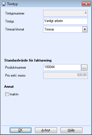 Om timtypen inte ska användas markerar du kryssrutan Inaktiv.