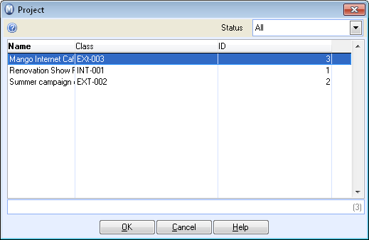 The project list may also be opened from integrated modules where you linked in a project.
