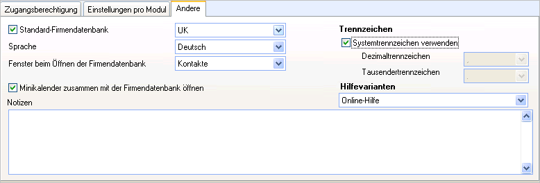 Standard-Firmendatenbank: Hier legen Sie fest, welche Datenbank automatisch geöffnet wird, wenn Sie sich anmelden. Markieren Sie das Kontrollkästchen und wählen Sie die gewünschte Datenbank aus der Liste.