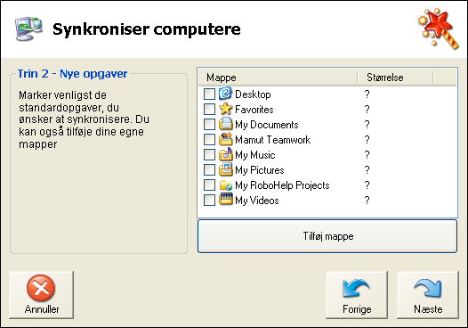 synkronisere. Du kan tilføje mapper, hvis du ønsker at synkronisere andre