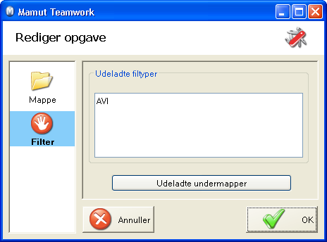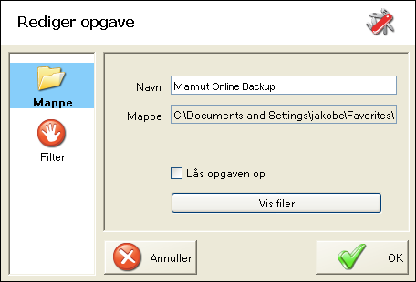 Du kan senere justere dit valg af mapper, som skal inkluderes i sikkerhedskopien. Du har måske valgt så mange dokumenter, at der bliver for lidt plads, eller også er det ikke nødvendigt at sikkerhedskopiere alle mapperne. Du kan da udelade specielle filtyper i den aktuelle opgave eller udelade hele undermapper.