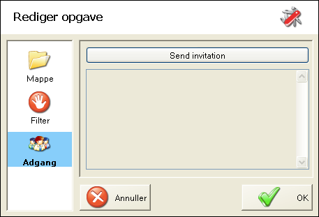 Dette valg er kun tilgængeligt for Send, Stream og Share. Vinduet viser, hvem som har tilgang, eller ”deltager”. Her kan du også invitere andre til at modtage opgaven ved at vælge Send invitation. Så starter guiden igen.