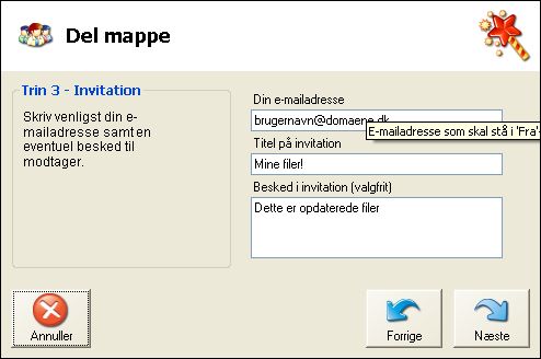 blive sendt sammen med invitationen. Opgiv denne i en egen e-mail, som