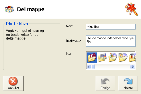 Skriv eventuelt en Beskrivelse af opgaven, og vælg et ikon for den mappe, som bliver oprettet.