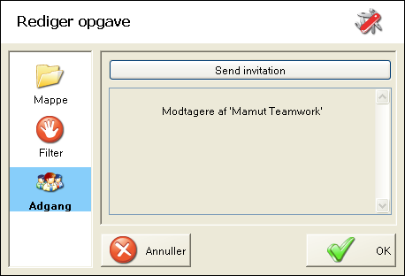 Hvis du ikke længere ønsker at modtage filerne, skal du stoppe modtagelsen i Mamut Teamwork. Det gør du ved at klikke på ikonet Stop på den aktuelle opgave. Filerne bliver liggende under Mine Dokumenter og Mamut Teamwork, indtil du sletter dem.