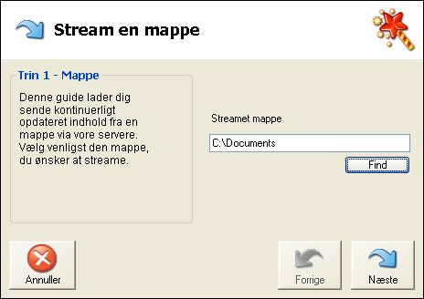 Klik på ikonet ved Stream. Vælg mappe ved at klikke Find,
