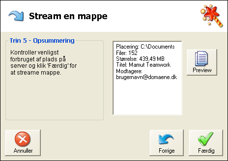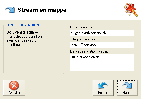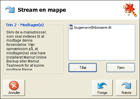 Stream vil være aktivt, så længe du ønsker det. Dette betyder, at når du senere ændrer på noget i mappen, vil denne ændring også blive overført til modtageren.