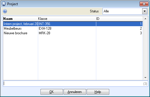 Uit de afrollijst rechtsbovenaan het venster kunt u de Status van de projecten filteren.