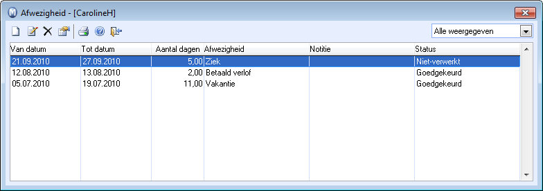 Beheer - Medewerkersregister - Personeel - Afwezigheid ![]()