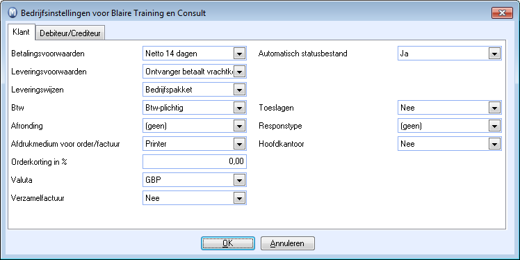 Soms is het gewenst een klant in zijn eigen valuta te factureren. Wanneer een klant altijd in zijn eigen valuta gefactureerd wordt, kunt u de betreffende valuta in de relatiekaart instellen. In sommige gevallen kan het effectiever zijn om de valuta direct in de order te overschrijven.