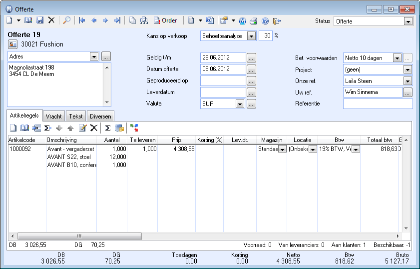 op het scherm. Indien u een PDF-printer hebt geïnstalleerd, kan de offerte ook naar een bestand in PDF-formaat geschreven worden.