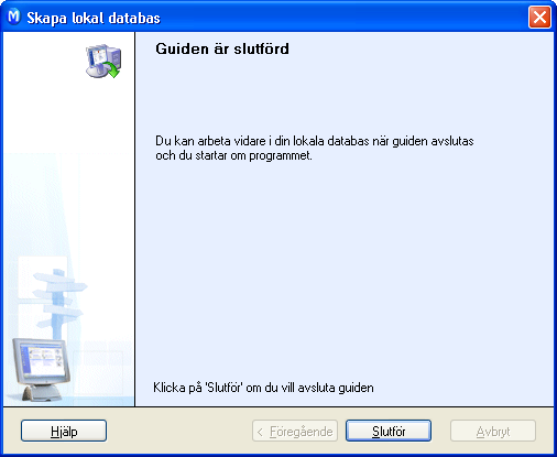 Klicka på Nästa och vänta tills programmet har kopierat färdigt databasen lokalt.